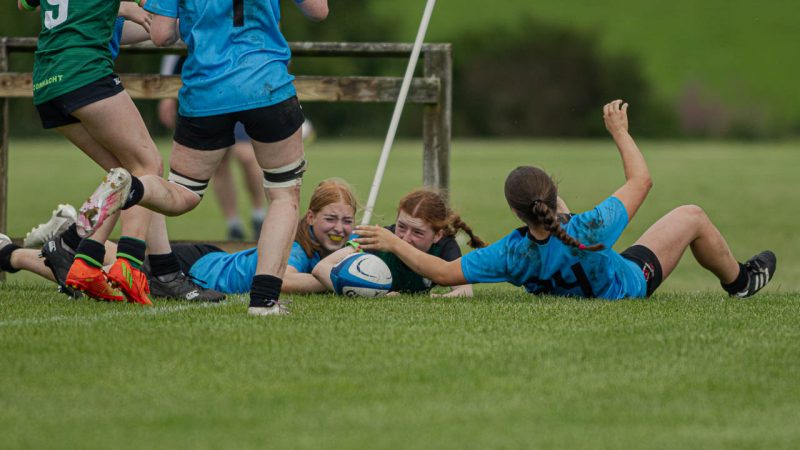 Connacht turned the pressure into points with two tries from theri impressive No 8 Roisin Power either side of a try from their fullback Emily Foley to give Connacht a 0 – 17 lead with Jemma Lees adding a conversion.