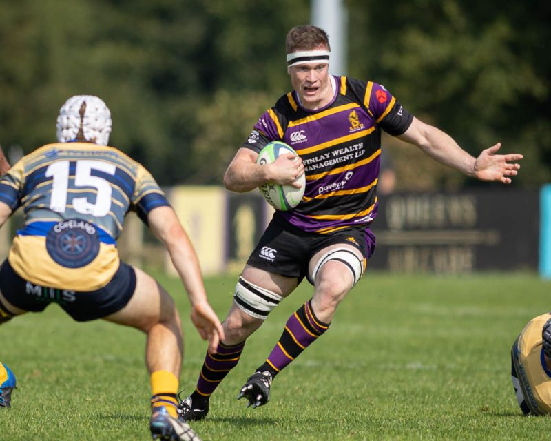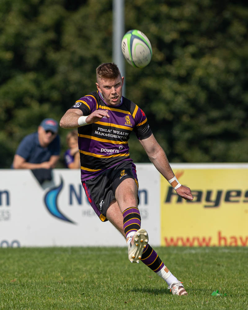The FRU Sport Senior Player of 2022-23 was the first to make an impact with a typically abrasive run leading to a quick tap penalty executed by Mark Keane for the opening try, converted by McMaster to give Instonians a 7 – 0 lead.