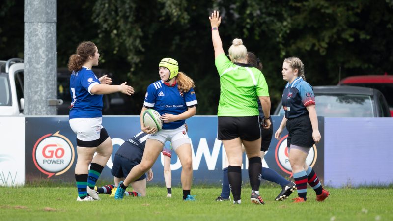 Quins enjoyed a period of possession with some strong carries down the middle but they struggled with the width that Queen’s looked to put on their game and the student’s wingers had some joy with Emma McArdle crossing for 2 tries. Rachel McIlroy grabbed one from close range before right wing Aoife McCormack went over for her first.