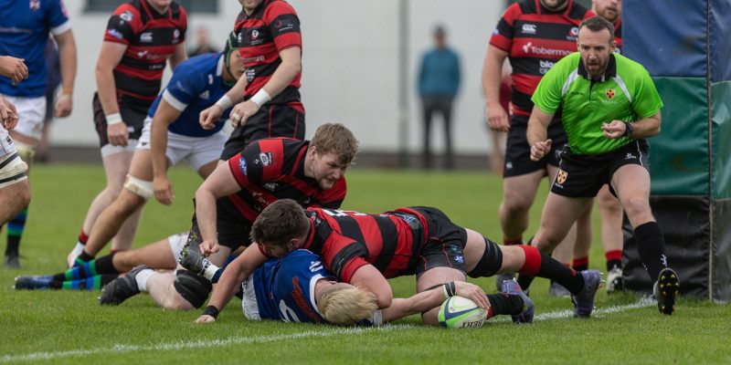 Again, Queens ran from deep against a tiring Rainey defence. Ryan Davis was put away to score beside the posts, after 78 minutes. McFarland’s conversion had Queens leading 40-17.