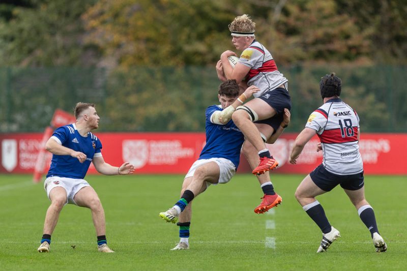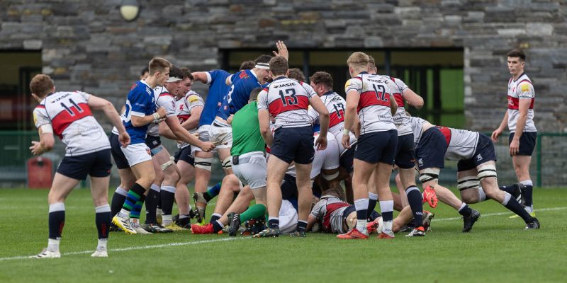 Alexander Clarke’s 29th minute try and Humphreys conversion out Queens 10-3 up. The lead didn’t last long. Howard Noonan’s try and Cassidy’s conversion after 31 minutes tied the scores at 10-10.